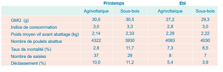 L’un des points centraux pour tout éleveur est l’impact sur les performances. Notre étude démontre que la volière photovoltaïque ne porte aucune atteinte aux performances agronomiques. Le poids moyen et l’indice de consommation sont similaires à ceux de l’élevage témoin.
