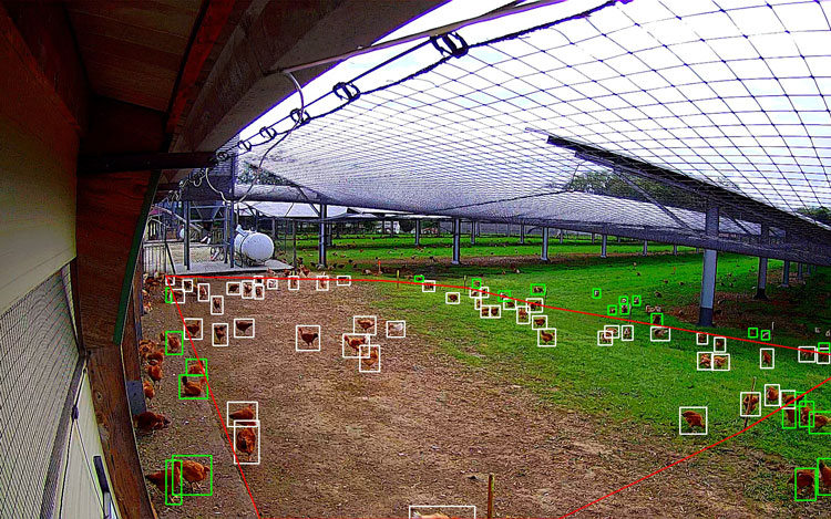 - Une exploration plus lointaine : les animaux ne restent pas massés près des trappes. En été, 28 % des présences ont été observées à plus de 35 mètres du bâtiment, une distance comparable à celle observée dans des parcours enrichis d’arbres ou de buissons.